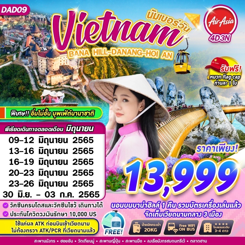 - เดินทาง 09-12/13-16/16-19/20-23/23-26 มิ.ย. และ 30 มิ.ย.-03ก.ค. 65