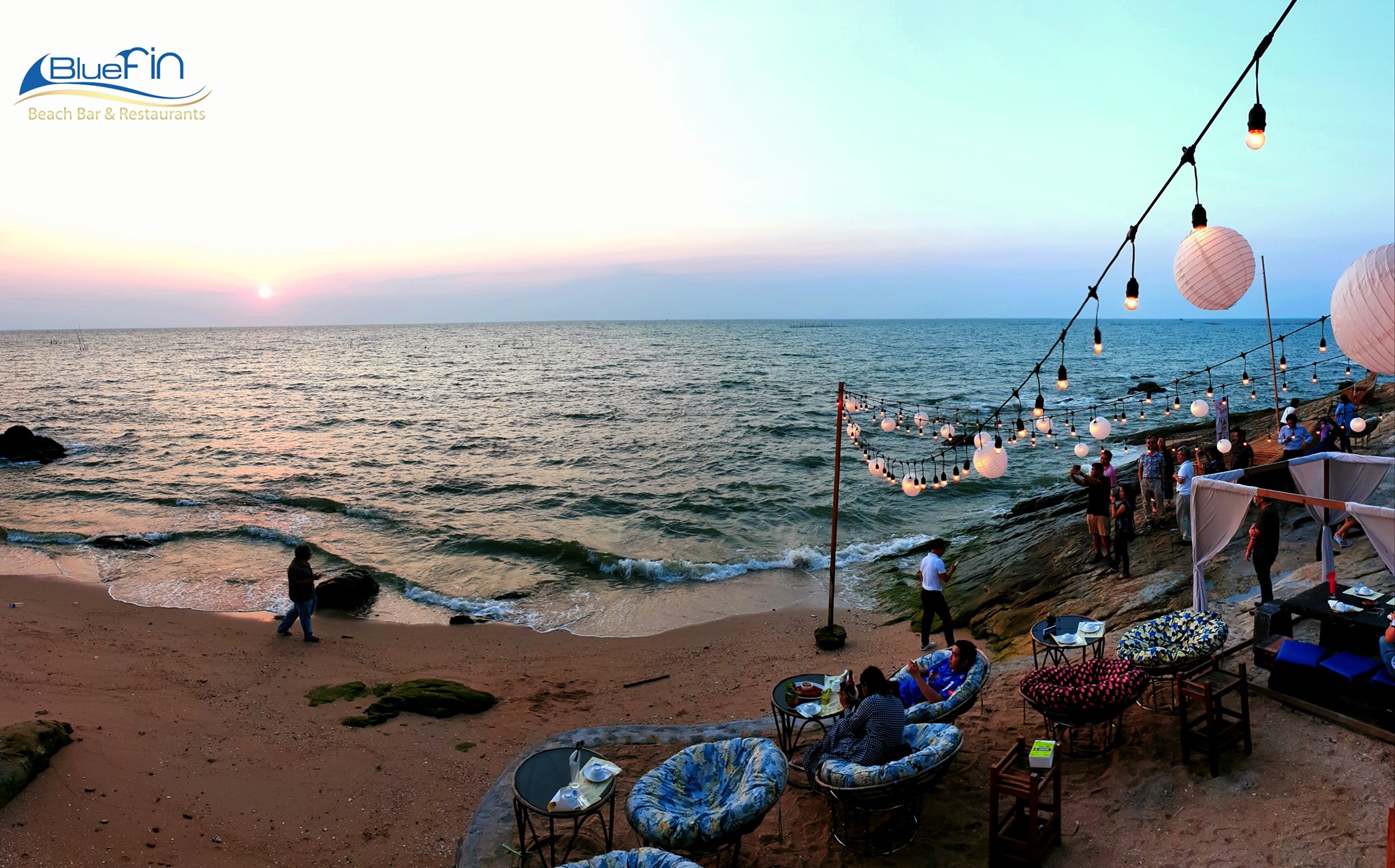 Bluefin Beach Bar & Restaurants ร้านอาหารติดทะเล วิวหลักล้าน ราคาอาหารหลักร้อย ชมพระอาทิตย์ตกดิน ฟิน บรรยากาศ บรรยากาศโรแมนติกยิ่งเข้ากับดนตรีสด มีมุมถ่ายรูปสวย ๆ ดูพระอาทิตย์ตกหาดบางแสน เหมาะสำหรับสังสรรค์กับเพื่อน กับครอบครัว หรือใครที่อยากมาสวีทกันสองคน แนะนำโต๊ะด้านหน้าริมทะเลค่ะ ฟินนม๊ากกกก มีที่นั่งเยอะ การตกแต่งหลากหลาย มุมถ่ายรูปเยอะ จัดร้านน่านั่ง ไม่แออัด เรียกได้ว่า ฟินสมชื่อค่ะ "บลูฟิน"